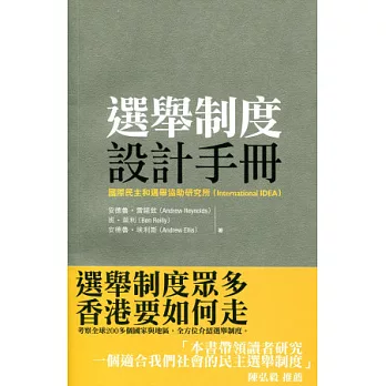 這本書源於瑞典「國際民主和選舉協助研究所」(IDEA),是由若干國家組成的 機構(中英美法俄都沒份),旨在協助各國發展民主和選舉制度,對各地的選舉制度有相當掌握。這本書名為「設計手冊」,顧名思義就是給制度設計者(當然包括 公民)參考,在發展選舉制度時要了解各種制度的長短處、亦要結合本土的實際情況。所以本書並不會推介某個「最佳」制度(雖然歐陸人士大都偏向比例代表 制),而是討論影響各種制度成敗的因素,可能是文化歷史、族群關係、或者政制配合之類。